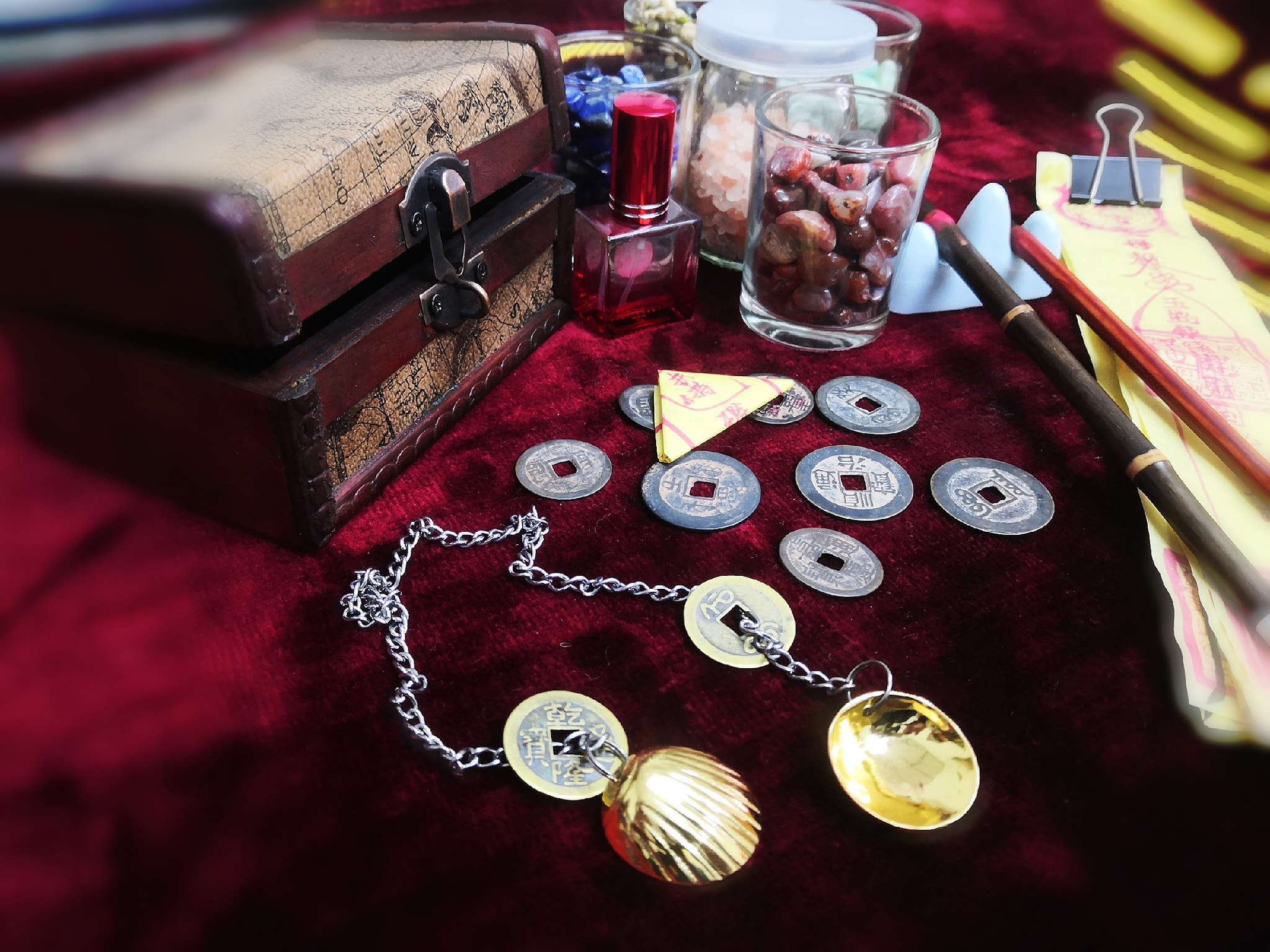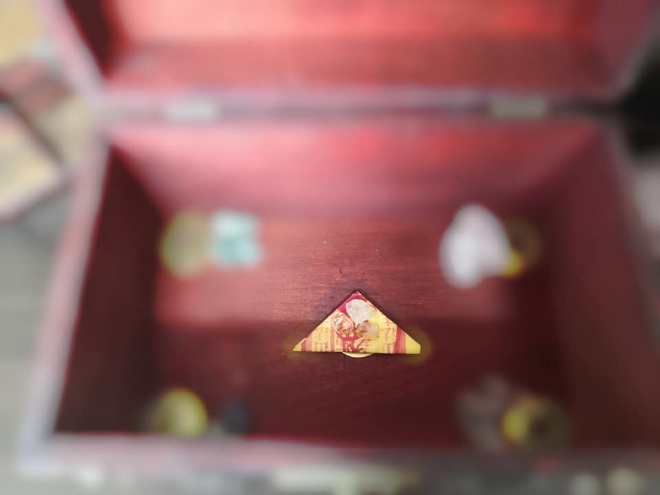 师傅会择日为恭请人制作独家聚宝盒,聚宝盒经过开光、念催财/招财咒、催贵人咒,化符等步骤,完成后放置在坛前请众神加持后才交给恭请人。